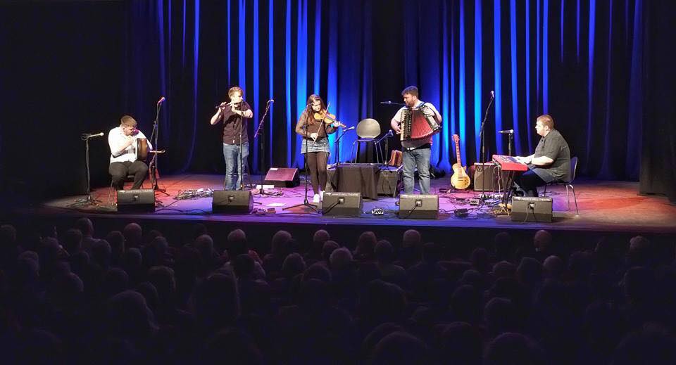 The impressive line-up features Newcastle accordionist Michael Biggins, Sligo flautist Tiernan Courell, Manx fiddler Isla Callister with Scots Rory Matheson on piano and Craig Baxter on bodhran. All currently in their 3rd year at the Royal Conservatoire of Scotland, they are at the forefront of the innovative movement of young traditional musicians on the Glasgow scene.